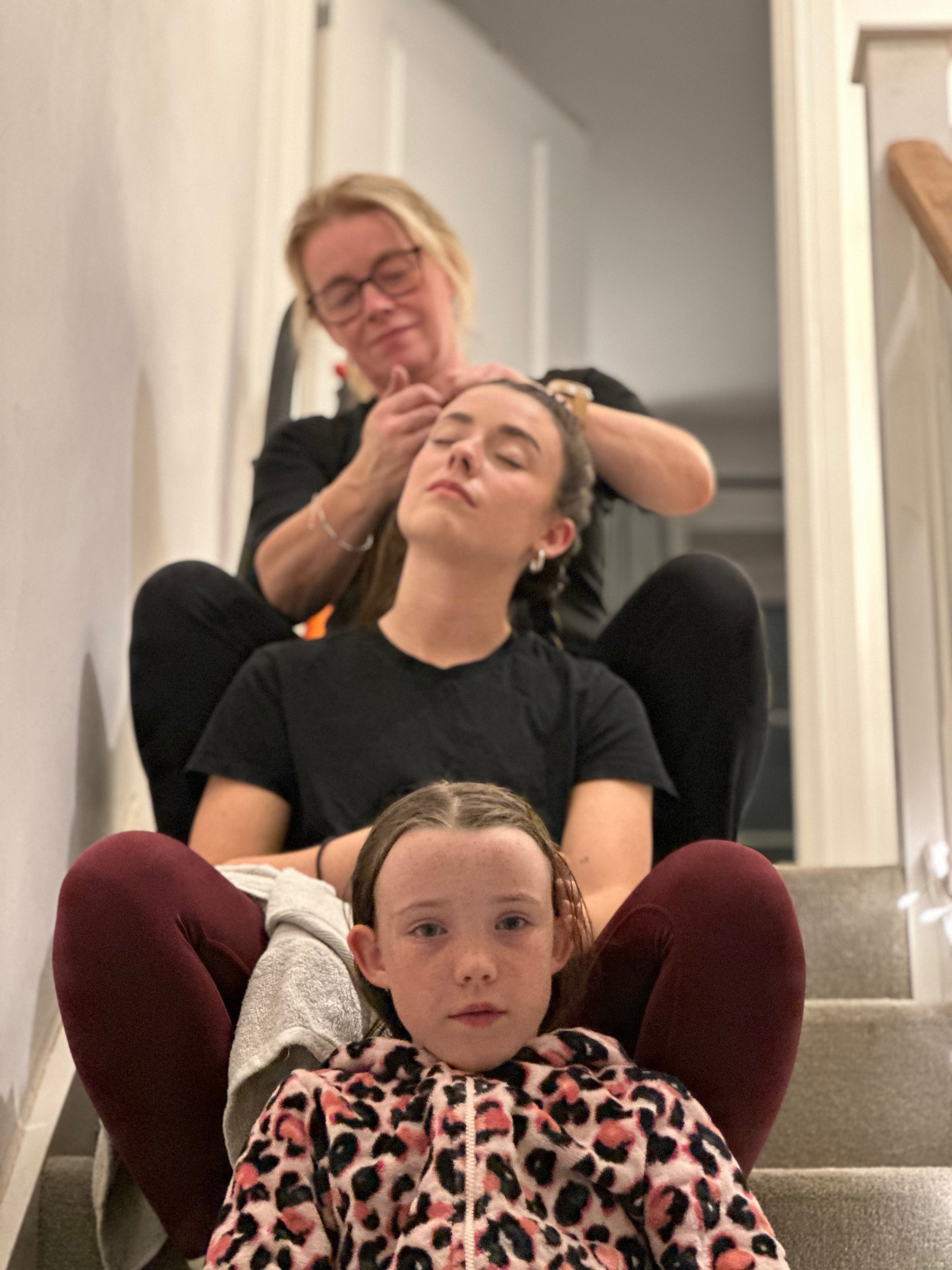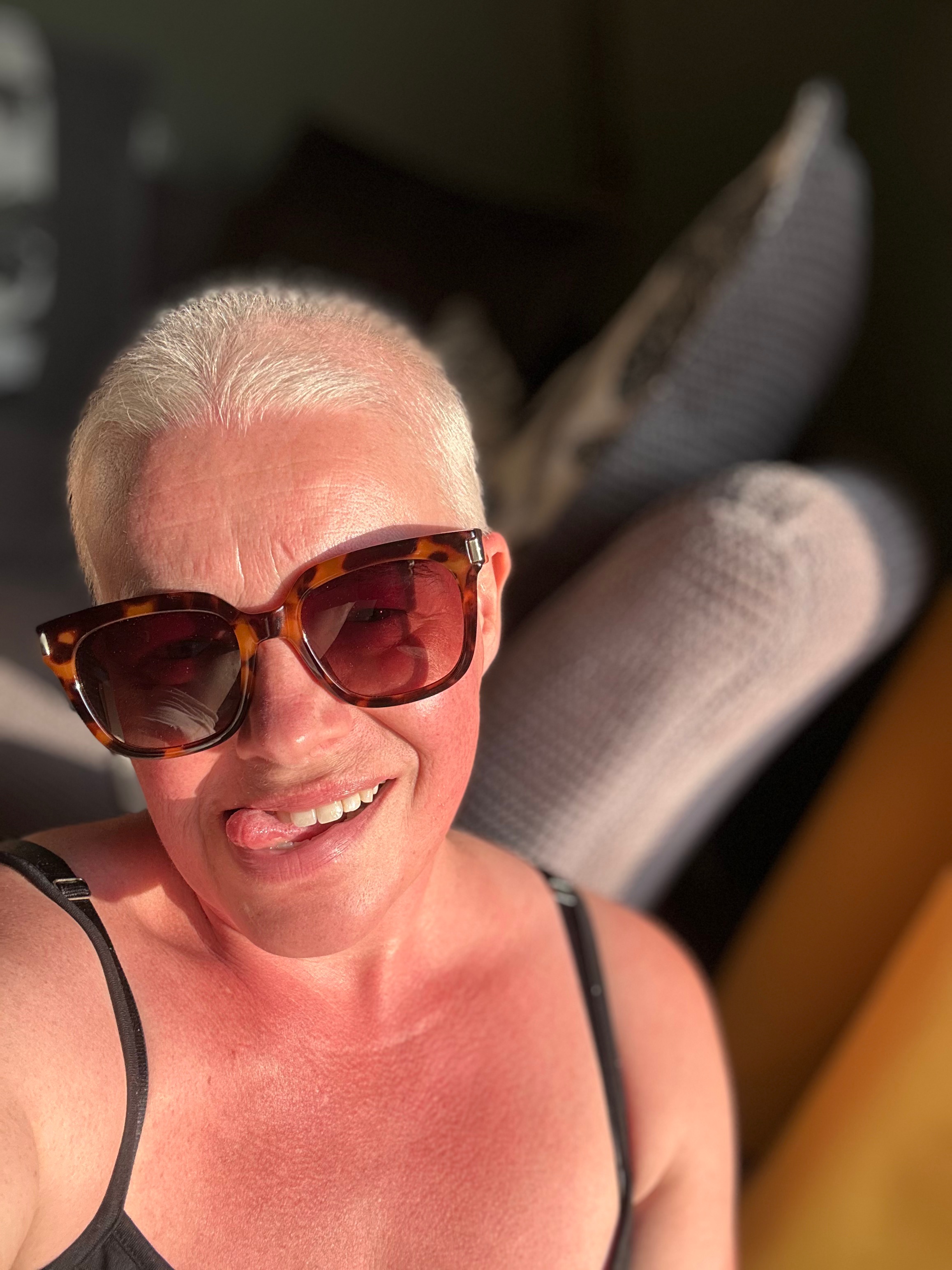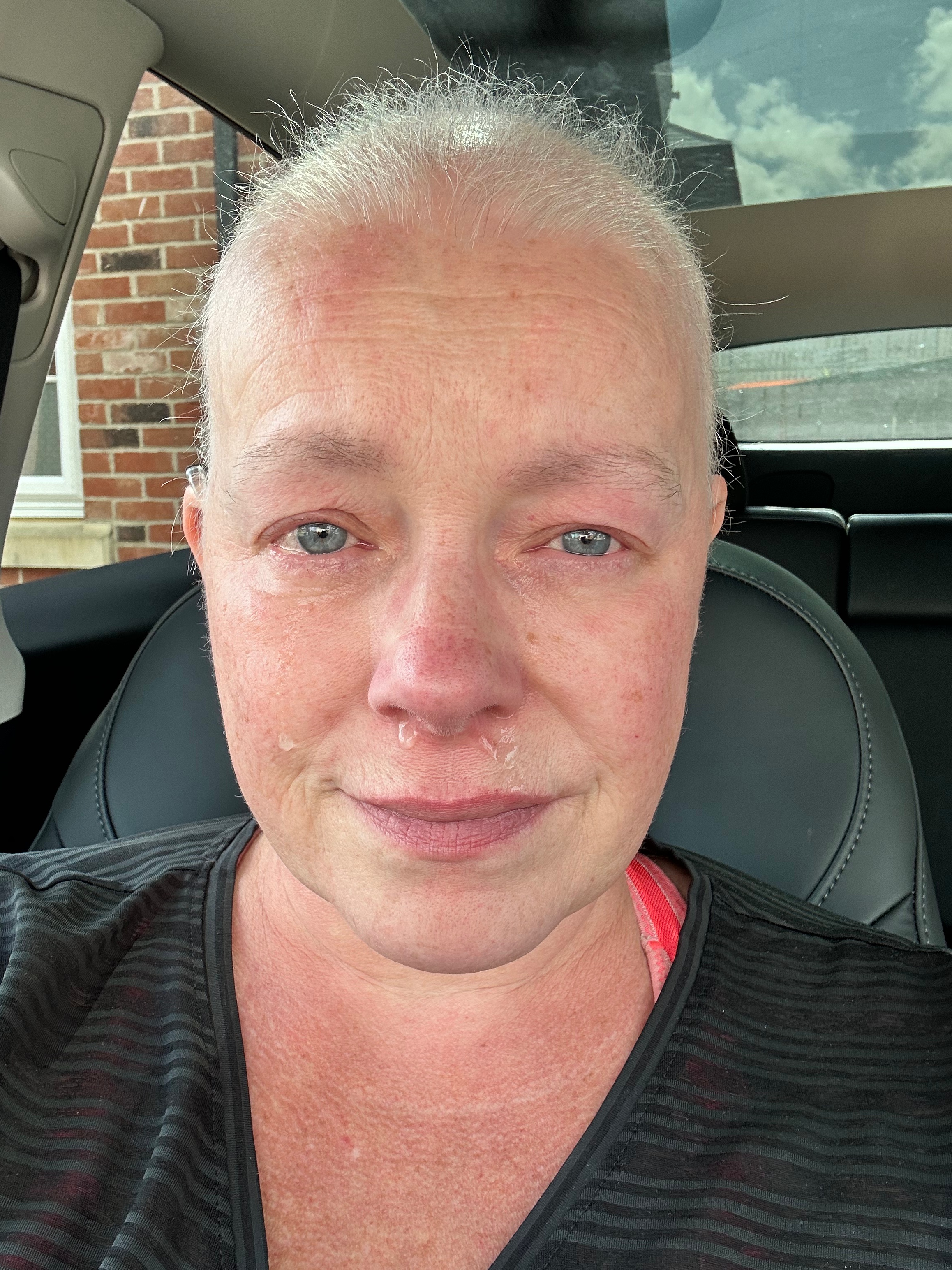 My treatments are still ongoing, and while I haven’t shared my experiences on the treatment yet—since they vary so much from person to person—perhaps one day I will. For now, though, it doesn’t feel necessary. However, here’s a picture from when my hair began to fall out. With the support of my family, we all took turns cutting and shaving my head. It was as much their journey as it was mine.