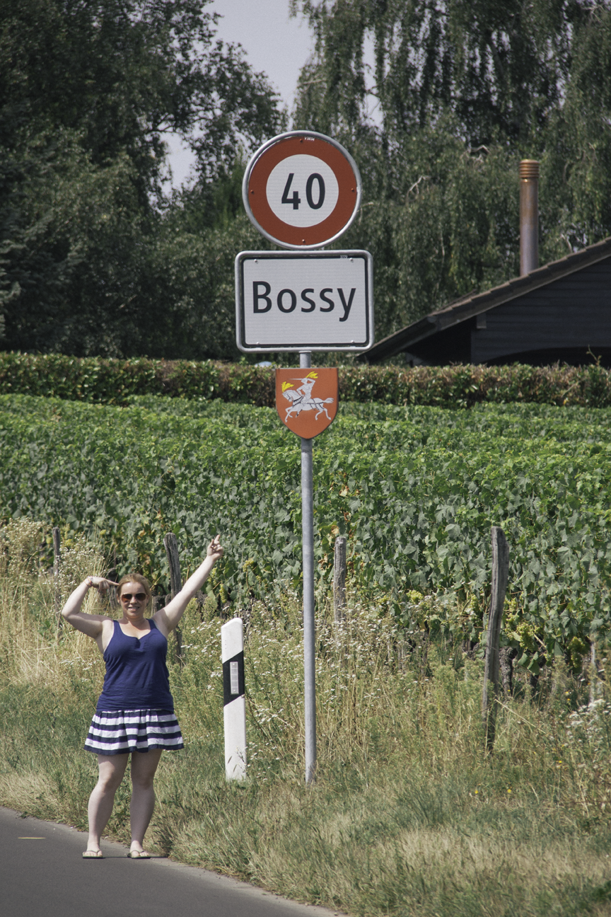Just across the border into Switzerland, found my first vineyard since arriving, along with this sign too! 🙂 – Joe