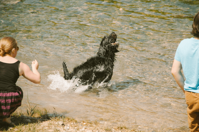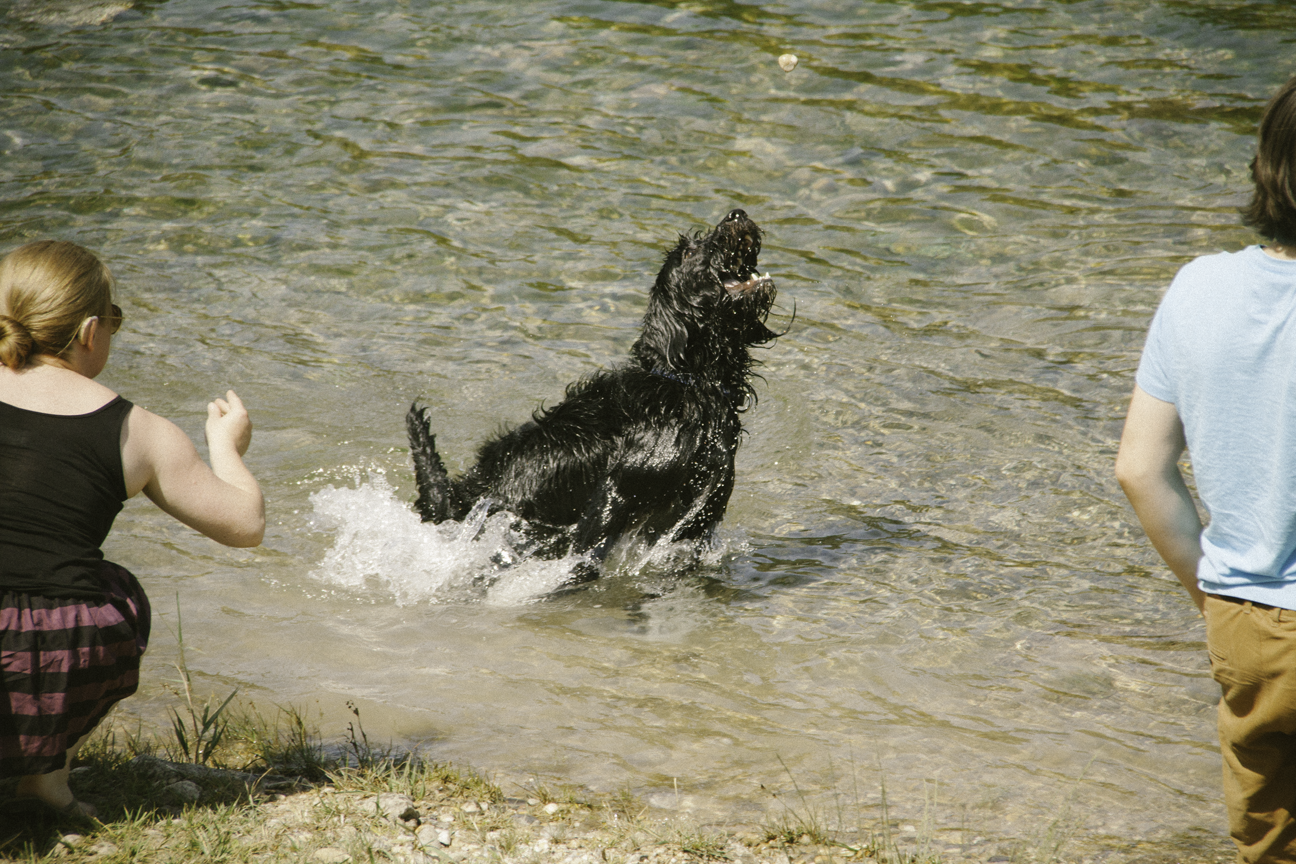 It was far too hot for Frodo in the car, a much-needed swim (& take ages to come out of the river!) – Joe