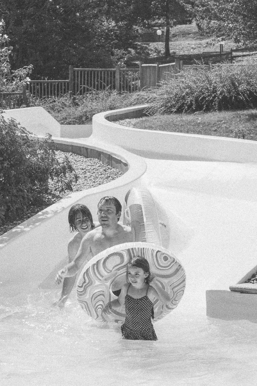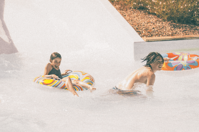 Kids having fun with their ringos down the water slides – Me